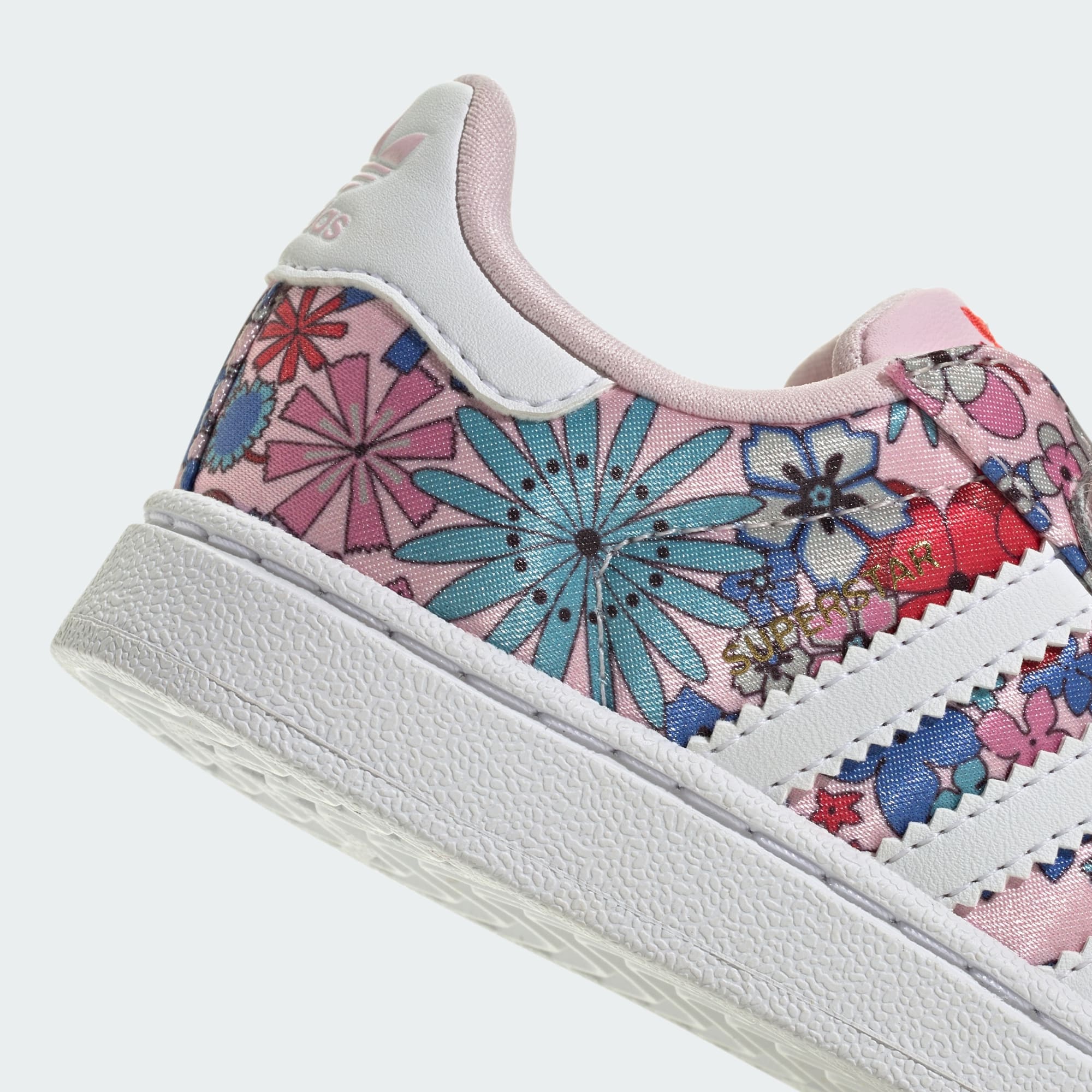 Der adidas Liberty London Superstar II Comfort Closure Schuh ist eine wunderbare Mischung aus kultigem Design und modernem Flair. Er ist von zauberhaften Mitternachtsfeengärten inspiriert und bringt die Magie funkelnder Sterne und spektakulären Feuerwerkslichtern in deinen Alltagslook. Das Obermaterial aus Textil und Leder sorgt für eine bequeme Passform und strapazierfähigen Tragekomfort. Der Schuh mit den leuchtenden Farben und verspielten Blumen bringt gute Laune in das Outfit deines Kindes. Der praktische Verschlussriemen sorgt für einen sicheren, bequemen Sitz für kleine Füße und ermöglicht das einfache An- und Ausziehen. Die Gummiaußensohle sorgt für zuverlässigen Grip und macht das Modell zu einem idealen Begleiter für tägliche Erkundungstouren. Egal, ob beim Spielen oder bei einem Familientreffen: Mit diesem Schuh sehen die Kleinen immer schick aus und fühlen sich wohl. Mach dir den adidas Spirit zu eigen und entdecke mit diesem kultigen Schuh eine Welt der unbegrenzten Möglichkeiten.