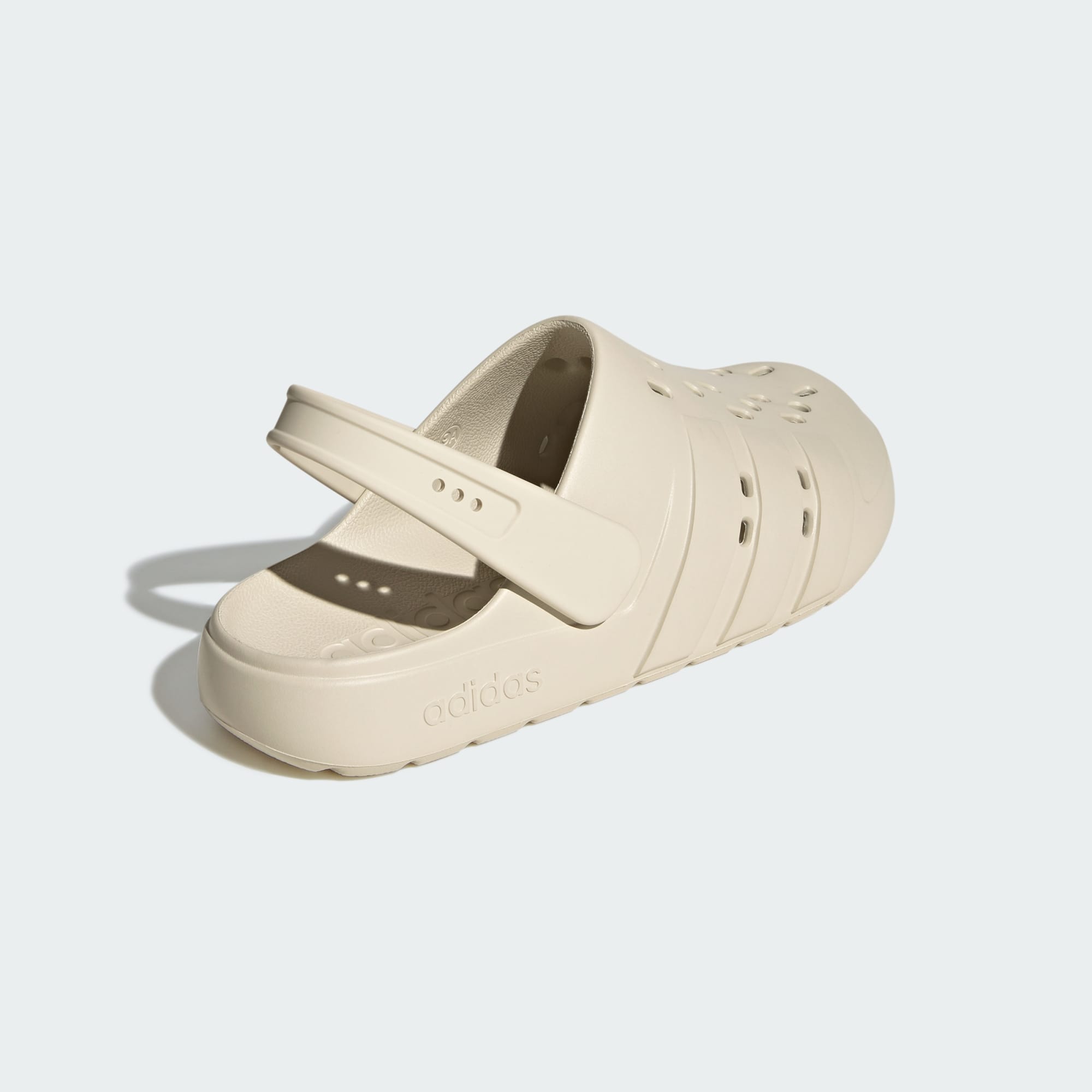 Die Adilette Clog 2.0 Slides sind die neueste Errungenschaft in unserem Sortiment an Freizeitartikeln. Diese Weiterentwicklung der klassischen Adilette-Silhouette verwandelt sich in einen Clog, mit einem Riemen an der Ferse, der für eine individuelle Passform entfernt werden kann. Löcher entlang der Seiten sorgen für Atmungsaktivität und können geschnürt werden, wenn du ein zusätzliches Element einbauen möchtest. Das vorgeformte 3D-Design ist flexibel, dämpfend und strukturiert.