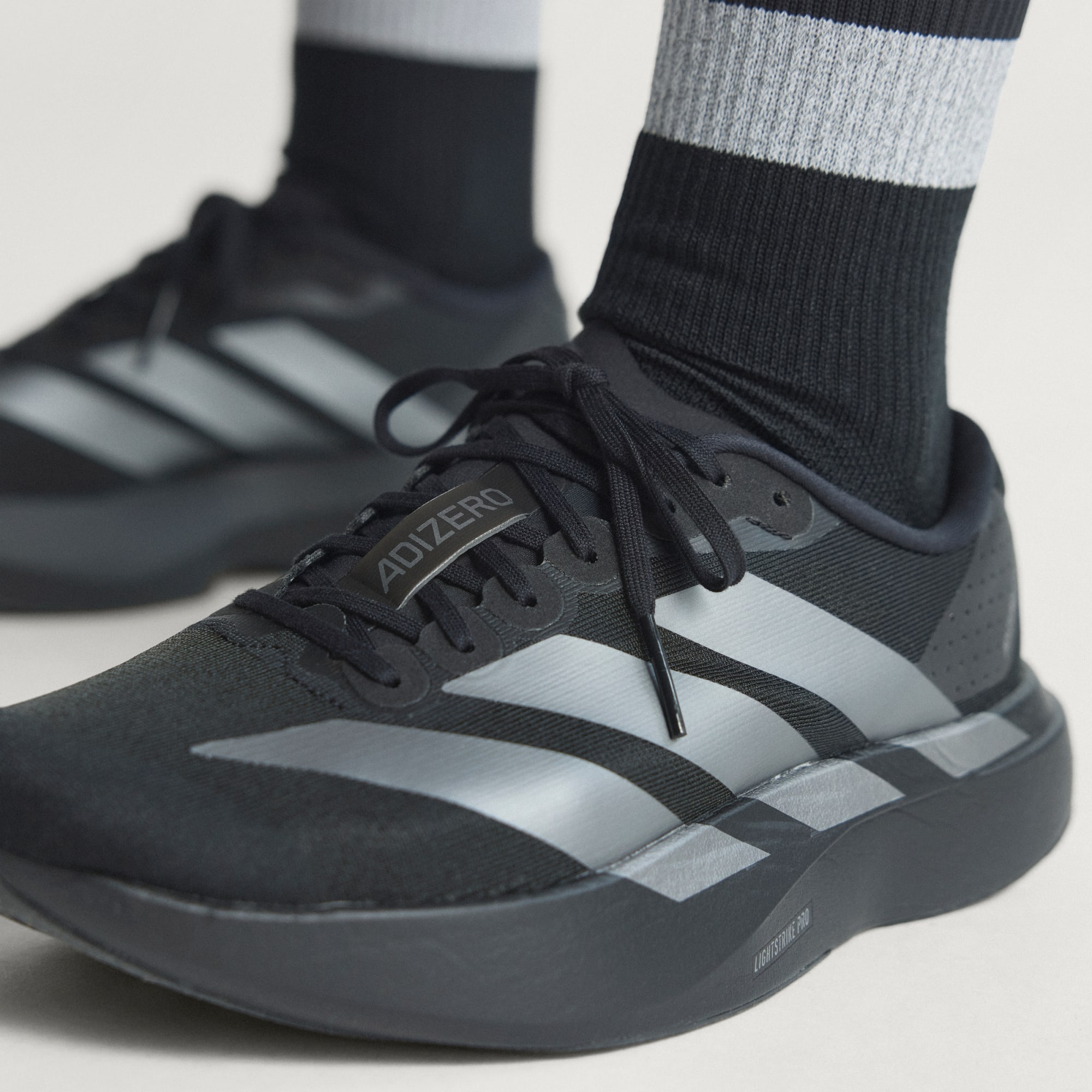 Das Obermaterial schafft die optimale Verbindung aus Passgenauigkeit, Komfort und einer markanten Adizero Ästhetik.