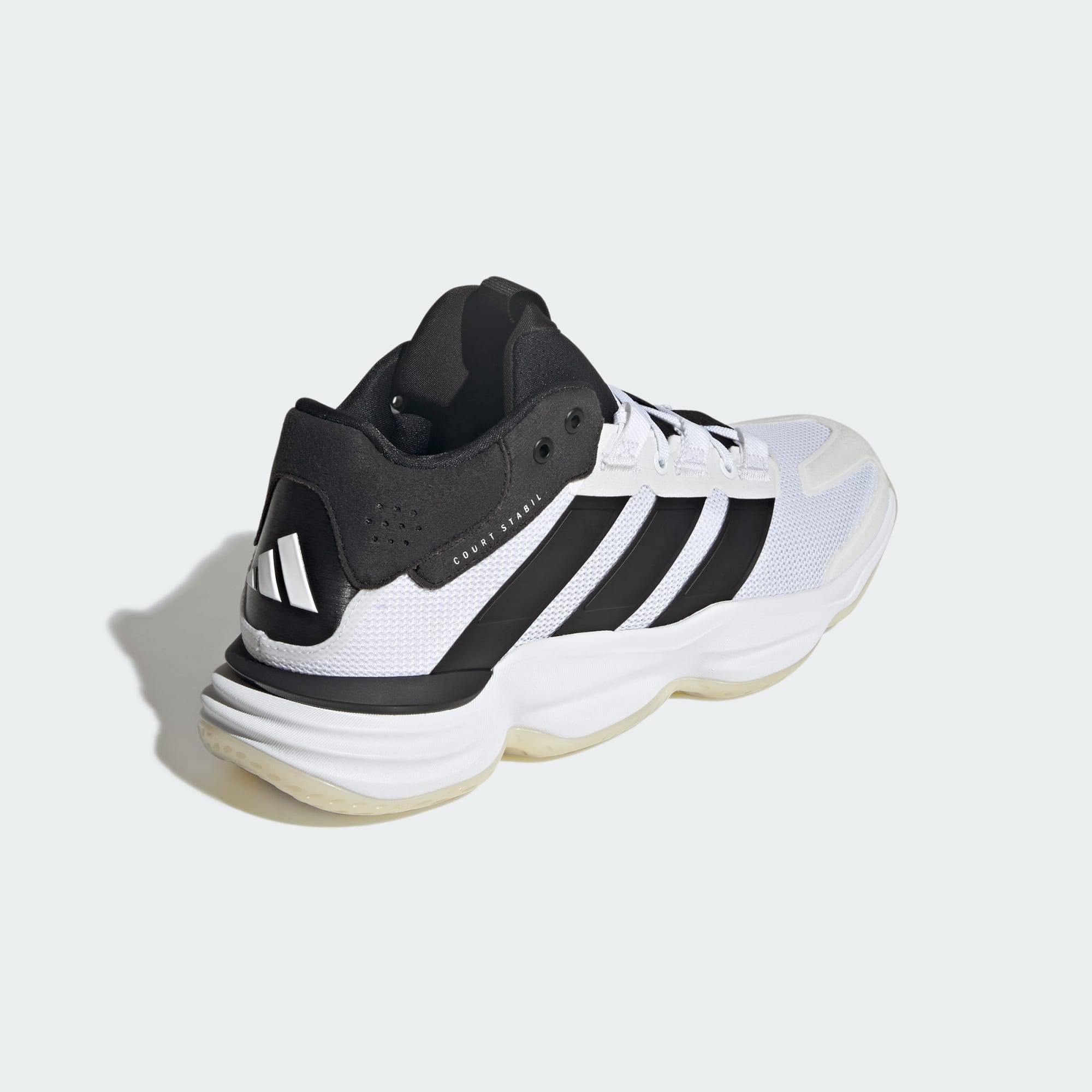 Nur du und der Court. Dieser vom Basketball inspirierte Schuh gehört zur bewährten adidas Stabil Family mit leistungsstarken Hallenschuhen. Die halbhohe Silhouette mit Obermaterial aus Mesh bietet Halt und Belüftung, die REPETITOR Zwischensohle sorgt für Stabilität und Komfort bei jedem Schritt. Für den nötigen Grip ist die strapazierfähige Gummiaußensohle verantwortlich – ein Gamechanger für dein Spiel.