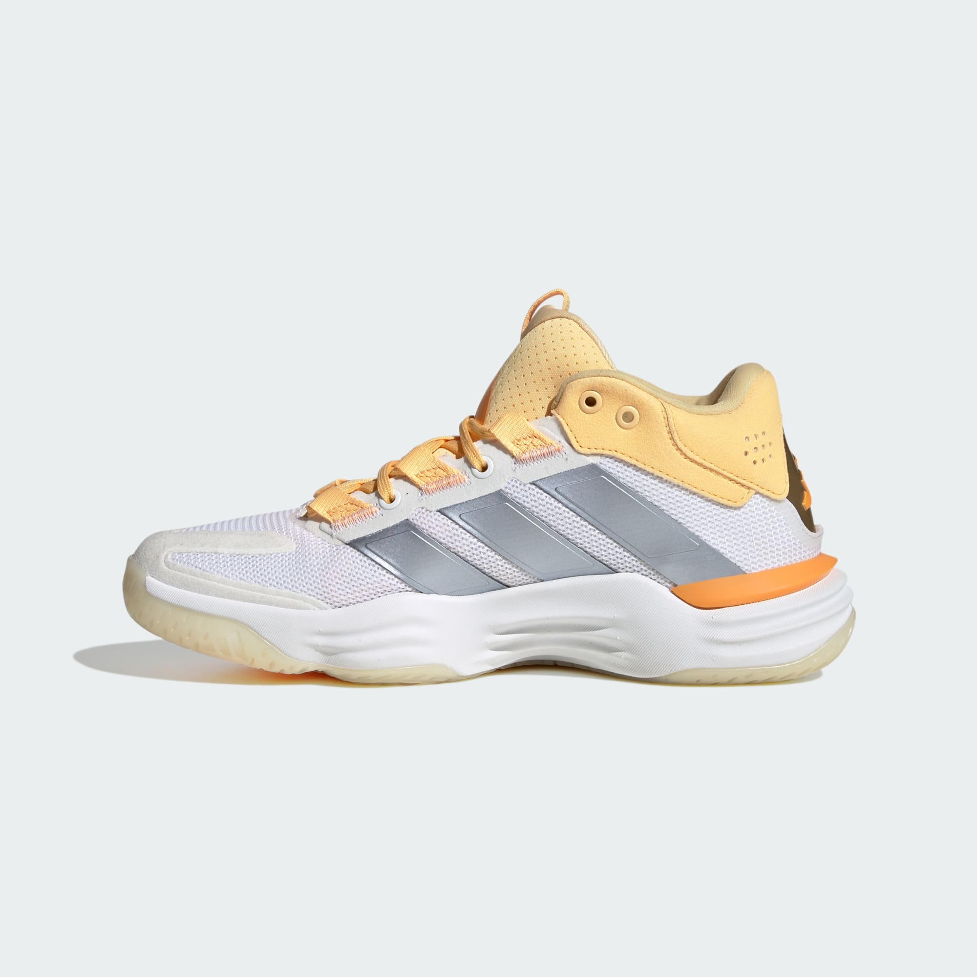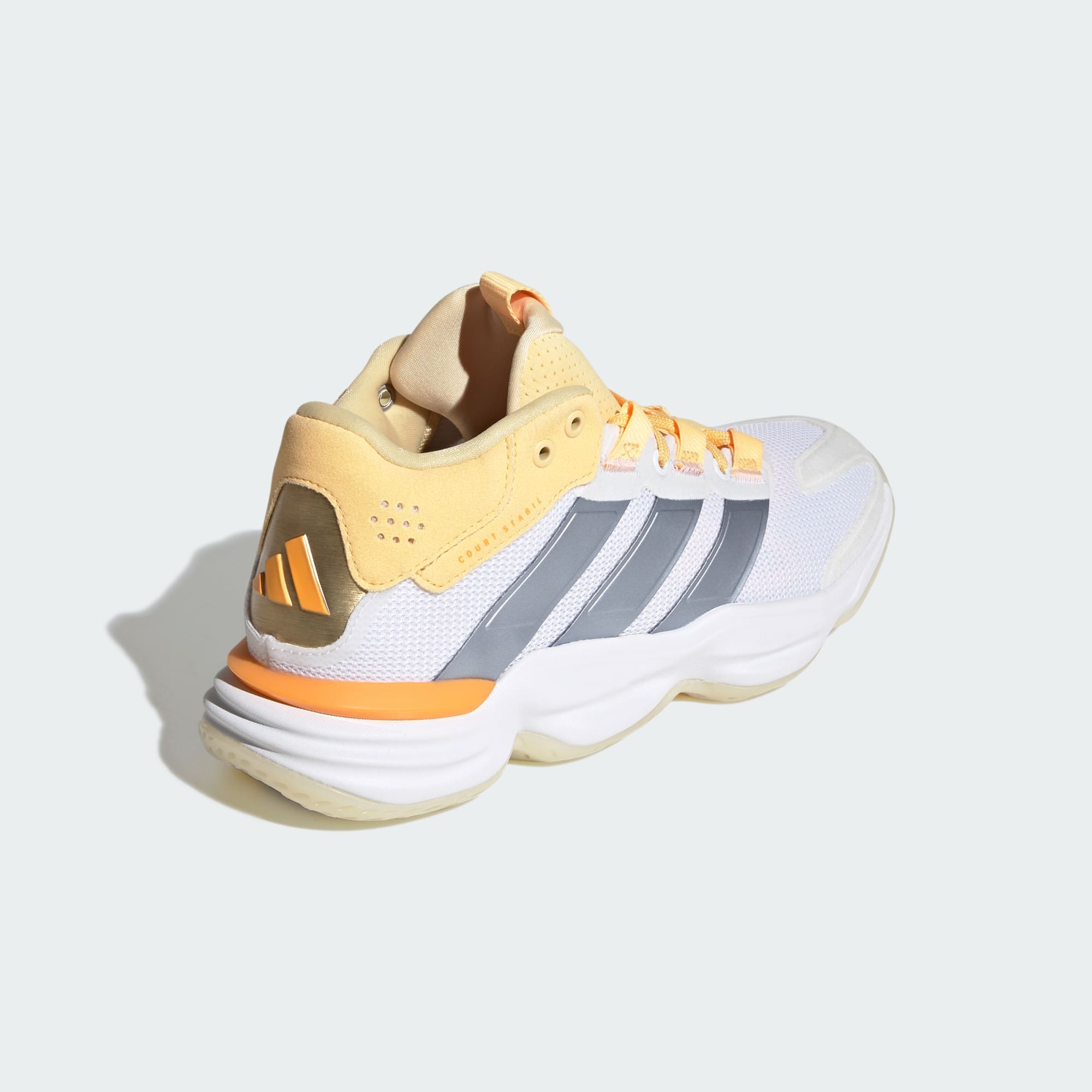 Nur du und das Spielfeld. Dieser vom Basketball inspirierte Schuh gehört zur bewährten adidas Stabil Family mit leistungsstarken Hallenschuhen. Die halbhohe Silhouette mit Obermaterial aus Mesh bietet Halt und Belüftung, die REPETITOR Zwischensohle sorgt für Stabilität und Komfort bei jedem Schritt. Für den nötigen Grip ist die strapazierfähige Gummiaußensohle verantwortlich – ein Gamechanger für dein Spiel.