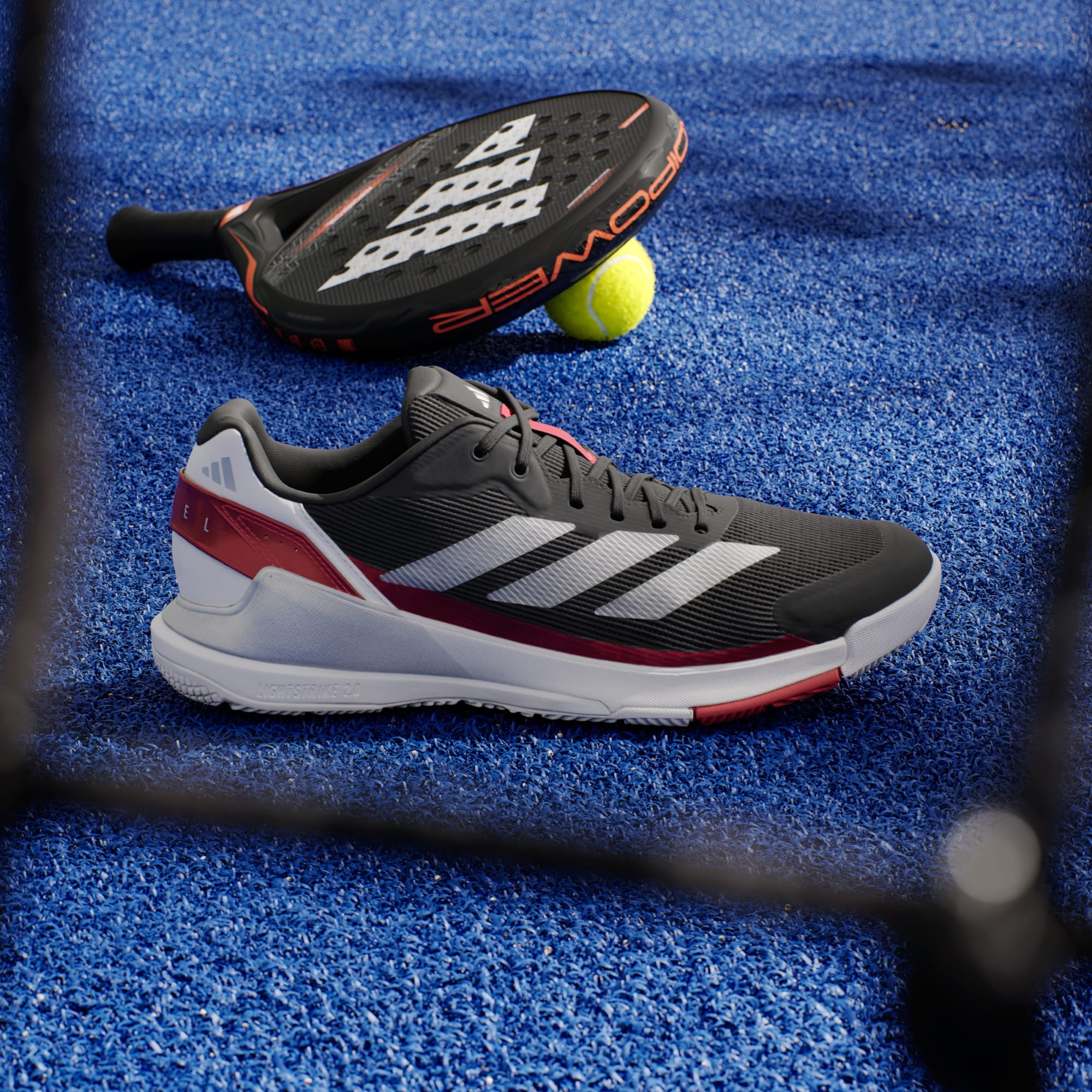 Mit diesem Crazyquick Schuh von adidas lieferst du auf dem Padel-Court eine Top-Performance ab. Er kommt mit einem leichten Obermaterial und einer stabilisierenden Slingframe Konstruktion für schnelle, selbstbewusste Moves. Die griffige Außensohle wurde speziell für diesen Sport designt und ermöglicht zusammen mit der dezenten Lightstrike Zwischensohle eine reaktionsfreudige Spielweise.