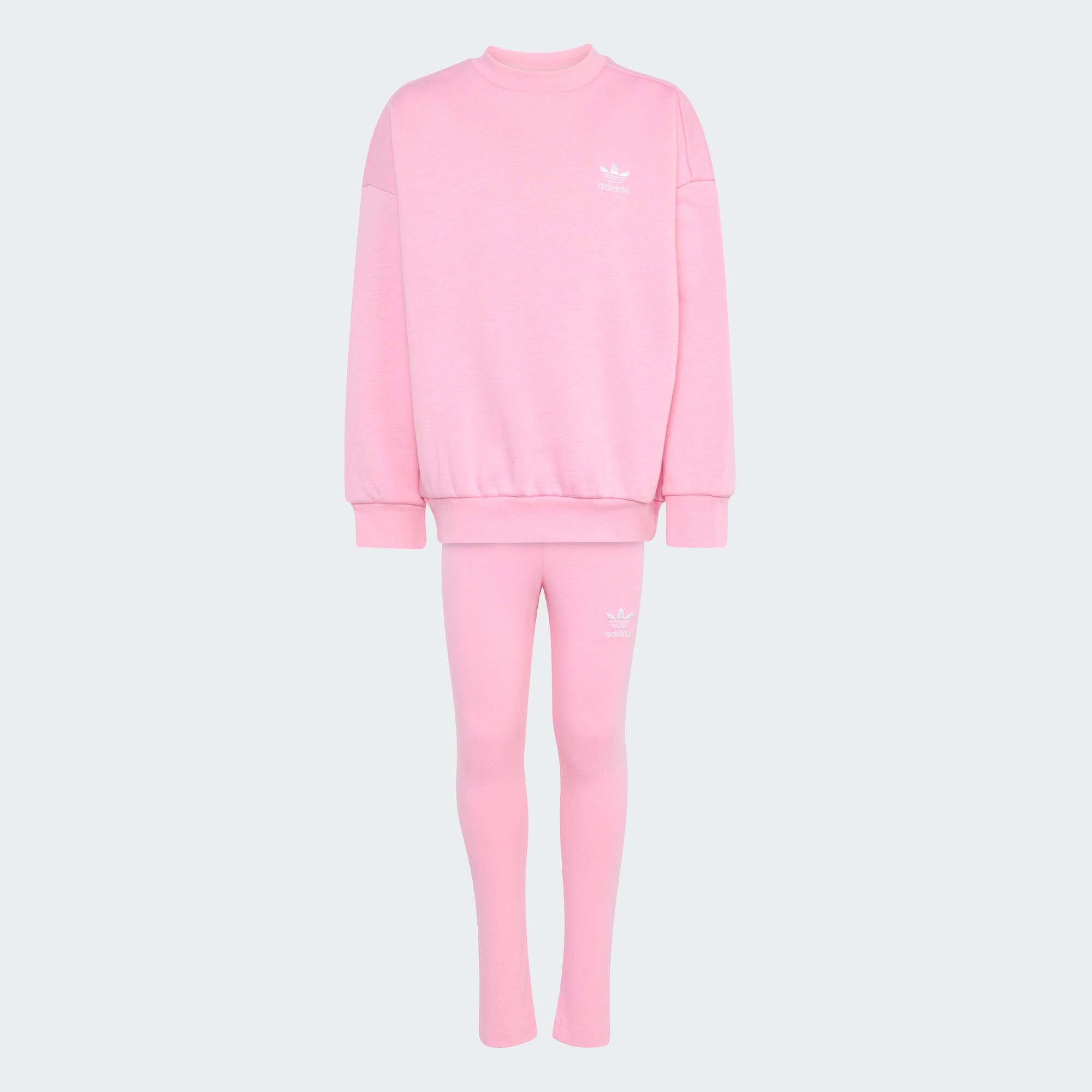 Mit dem OVERSIZED CREW LEGGINGS SET können Kinder bequemen Komfort genießen. Es wurde für Kinder entworfen, die sich gerne frei bewegen, und ist wie geschaffen für Spiele, Abenteuer oder einfach nur zum Ausruhen. Dieses adidas Set hat eine Oversize-Passform, damit sie bei ihren täglichen Aktivitäten möglichst viel Bewegungsfreiheit haben. Ein Knopfverschluss erleichtert das Anziehen. Das Markenlogo ist auf der Brust und am Bein aufgestickt und verleiht dem Set den letzten Schliff. Ob sie herumtoben oder zu Hause entspannen, dieses vielseitige Set hält problemlos mit ihnen Schritt.