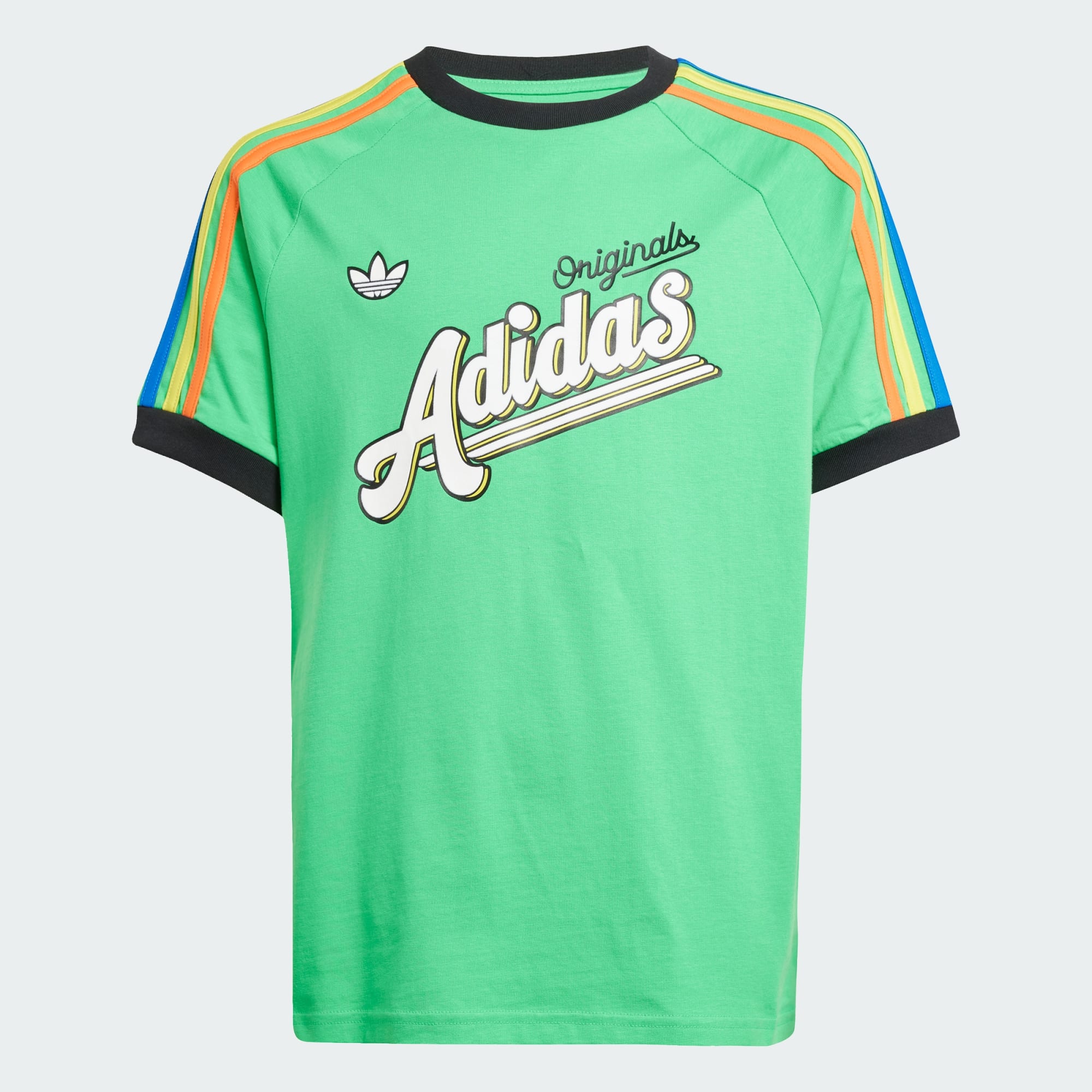 Inspired by our sporting heritage, this juniors' tee from adidas plays with vibrant colours and playful graphics. Staying true to our archives, we bring back tricolour 3-Stripes and an oversized retro-style adidas Originals print. The loose fit creates a casual look and feel.