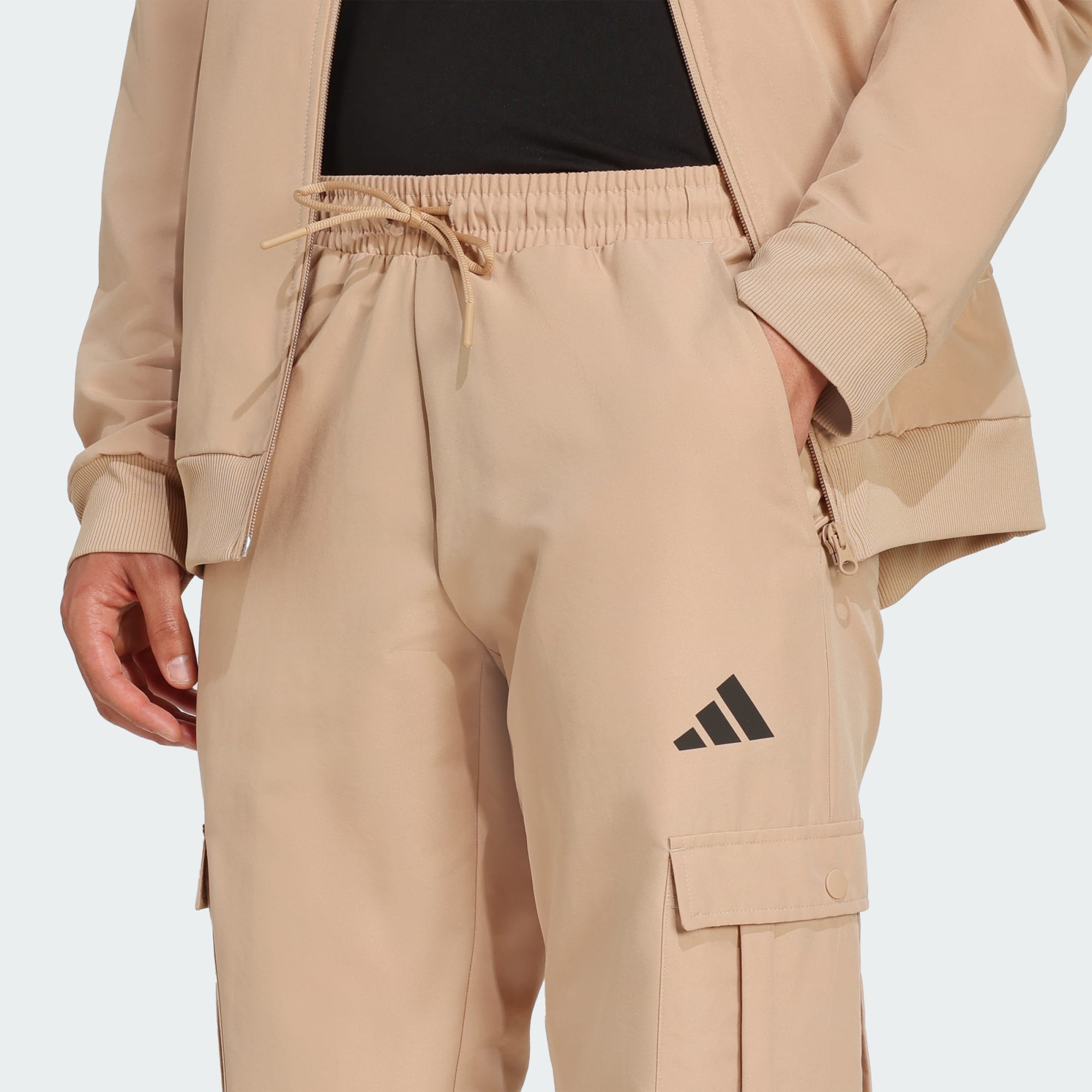 A busy day on your schedule calls for the ease and comfort of this versatile adidas tracksuit. Cargo pockets give you plenty of room for your essentials so you don't have to slow down. The woven fabric is made for the long haul, and the sporty 3 Bar Logos on the chest and thigh show some subtle love for the brand.