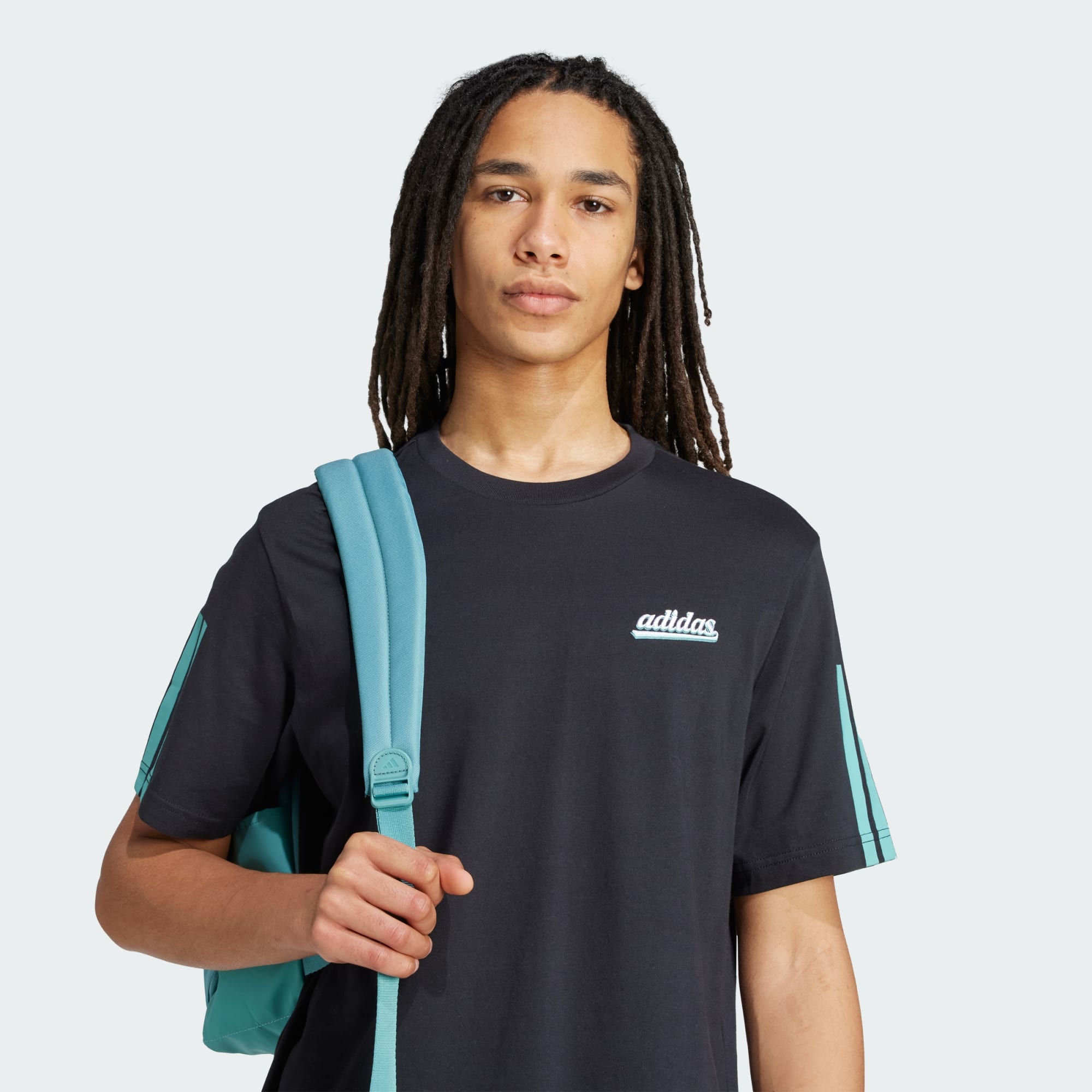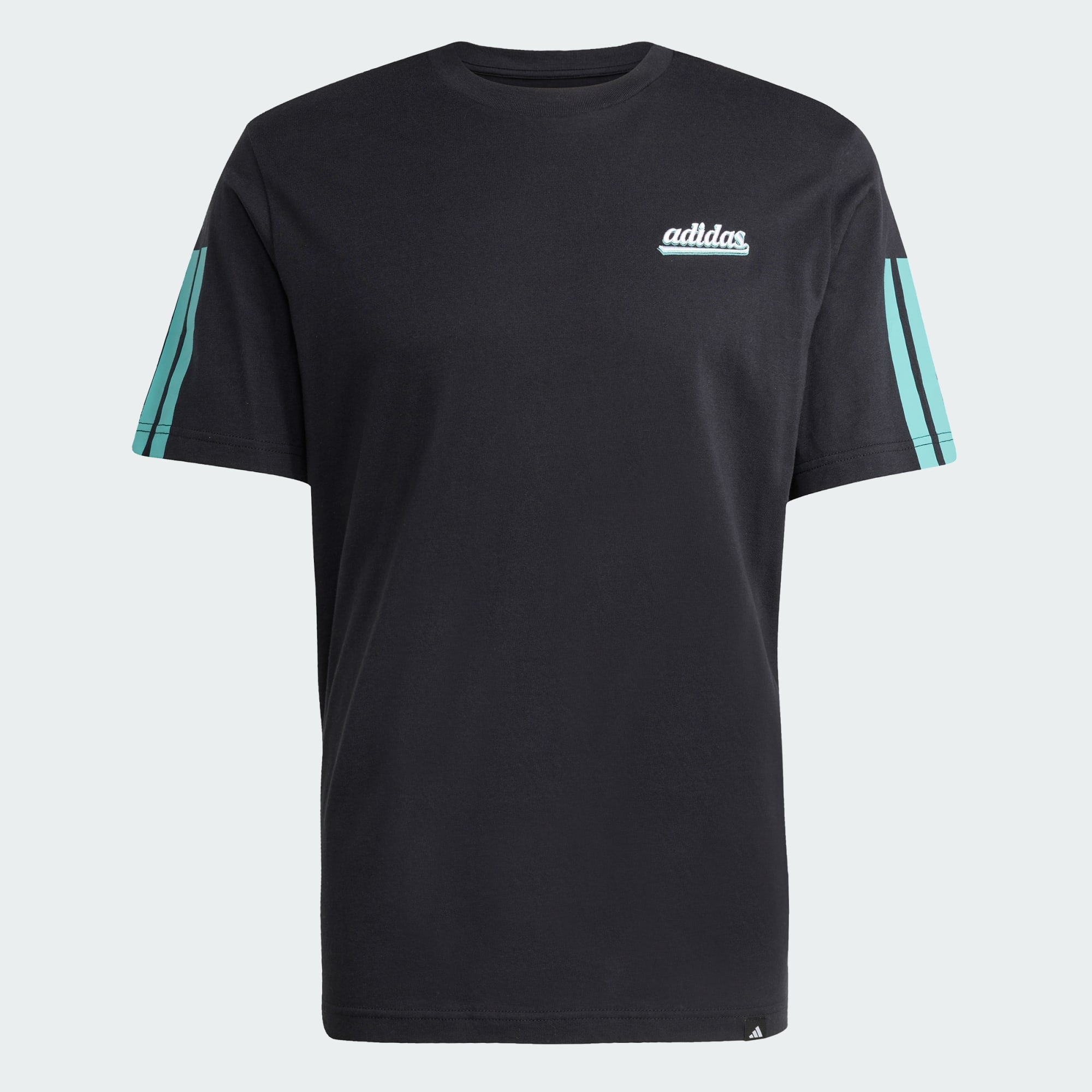 This adidas tee brings a fresh perspective to casual comfort. The soft cotton jersey keeps you comfortable, whether you're relaxing at home or headed out for the day. 3-Stripes on the sleeves and a script logo in front add a sporty touch.