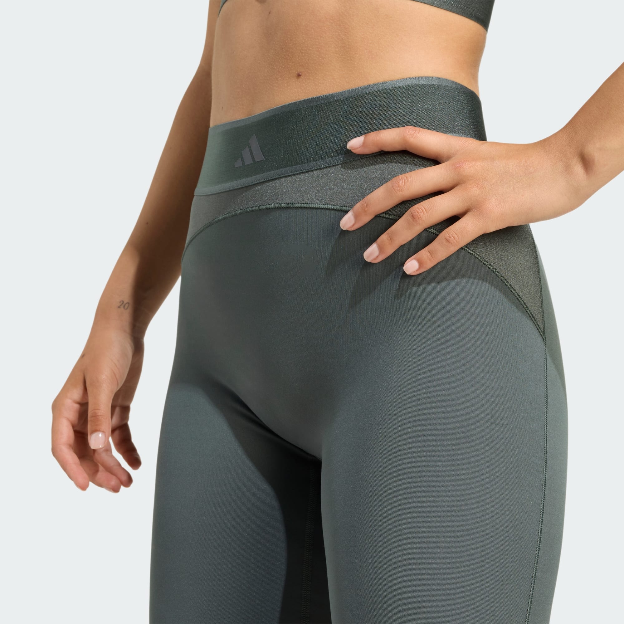 Make a statement in these adidas full-length workout leggings. With a sporty yet cute mix of high shine and matte fabric, these leggings take you from Pilates to post-workout errands. The sleek, seamless front flatters your shape, while the bold jacquard waistband shows off your style. CLIMACOOL wicks and disperses sweat for cool, dry and distraction-free performance. CLIMACOOL helps you manage sweat with materials that wick and manage sweat quickly. Its fast-dry fibres give you a fresh-skin feel.