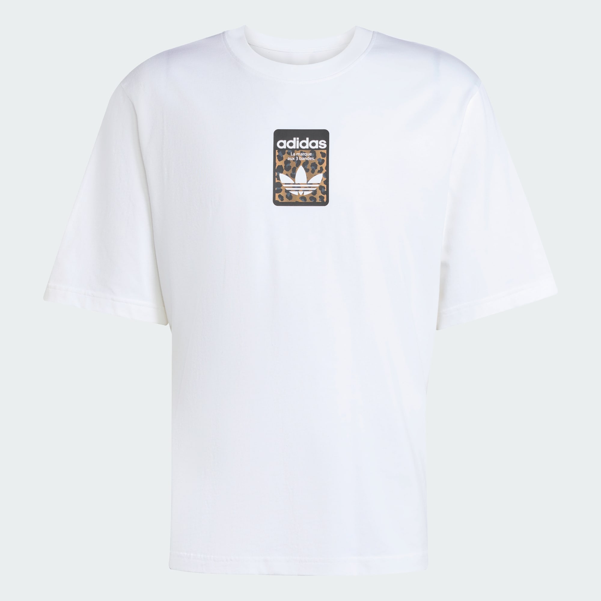 A leopard can't change its spots, but you can switch up your style with this adidas tee. This shirt has an oversized shape that keeps your vibe laid-back and your options open. Pair with joggers for a day of comfort or dark jeans to give your look some edge. Leopard-print details in front add an edge.