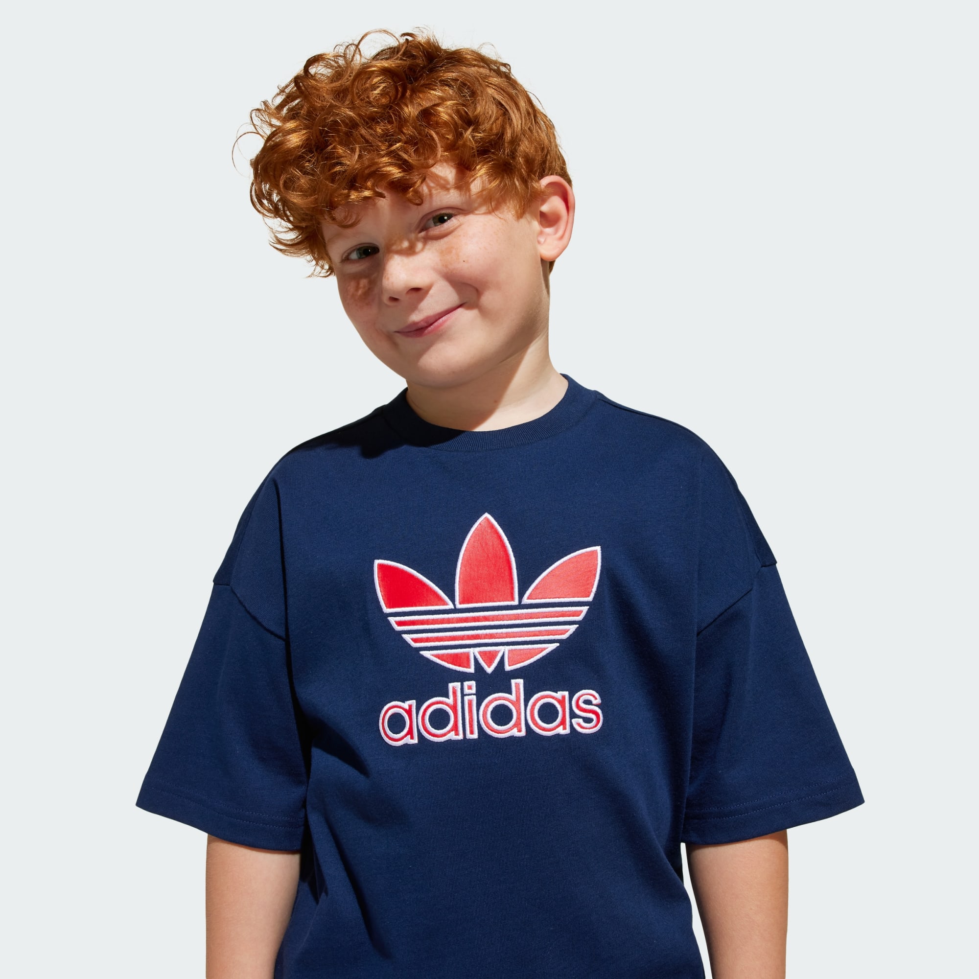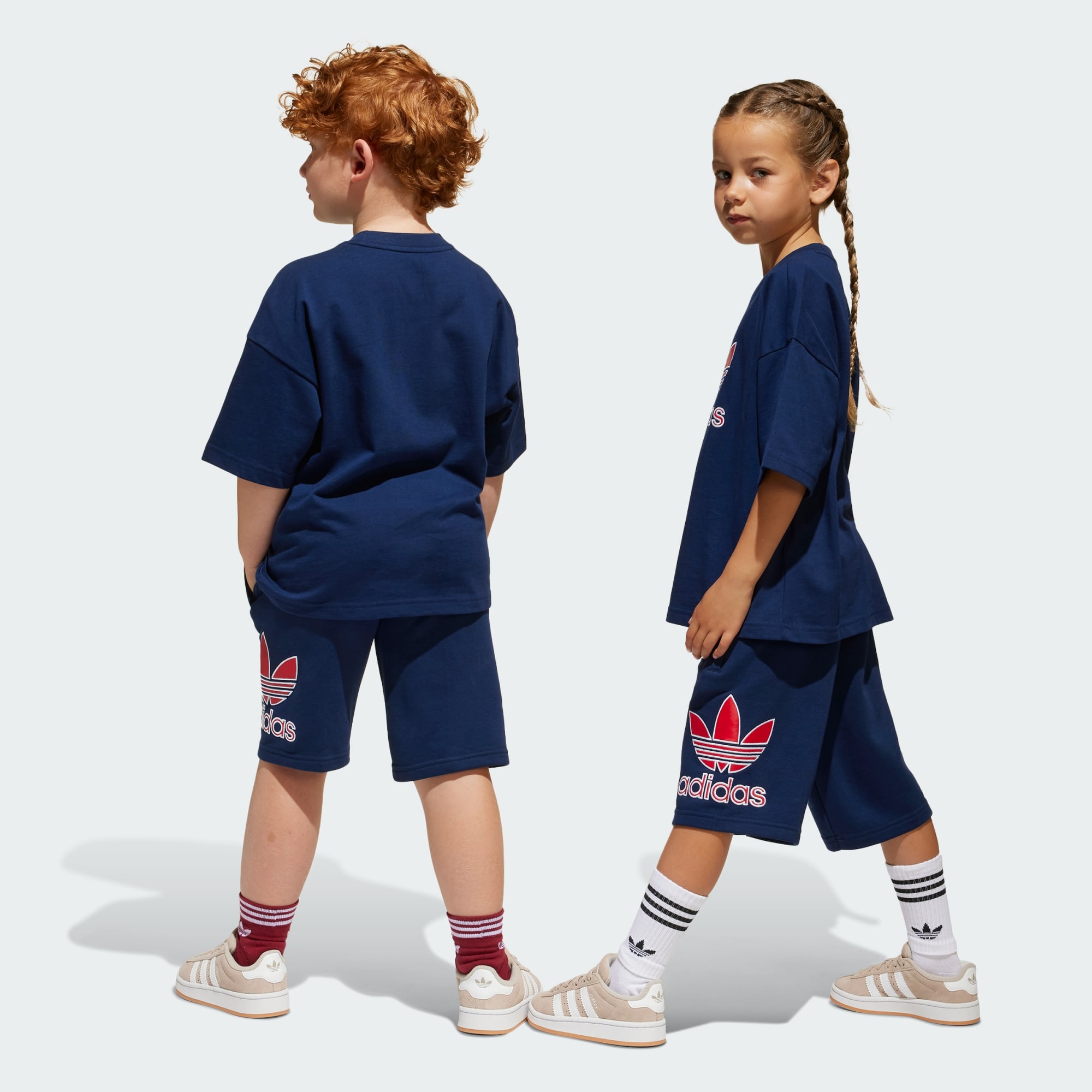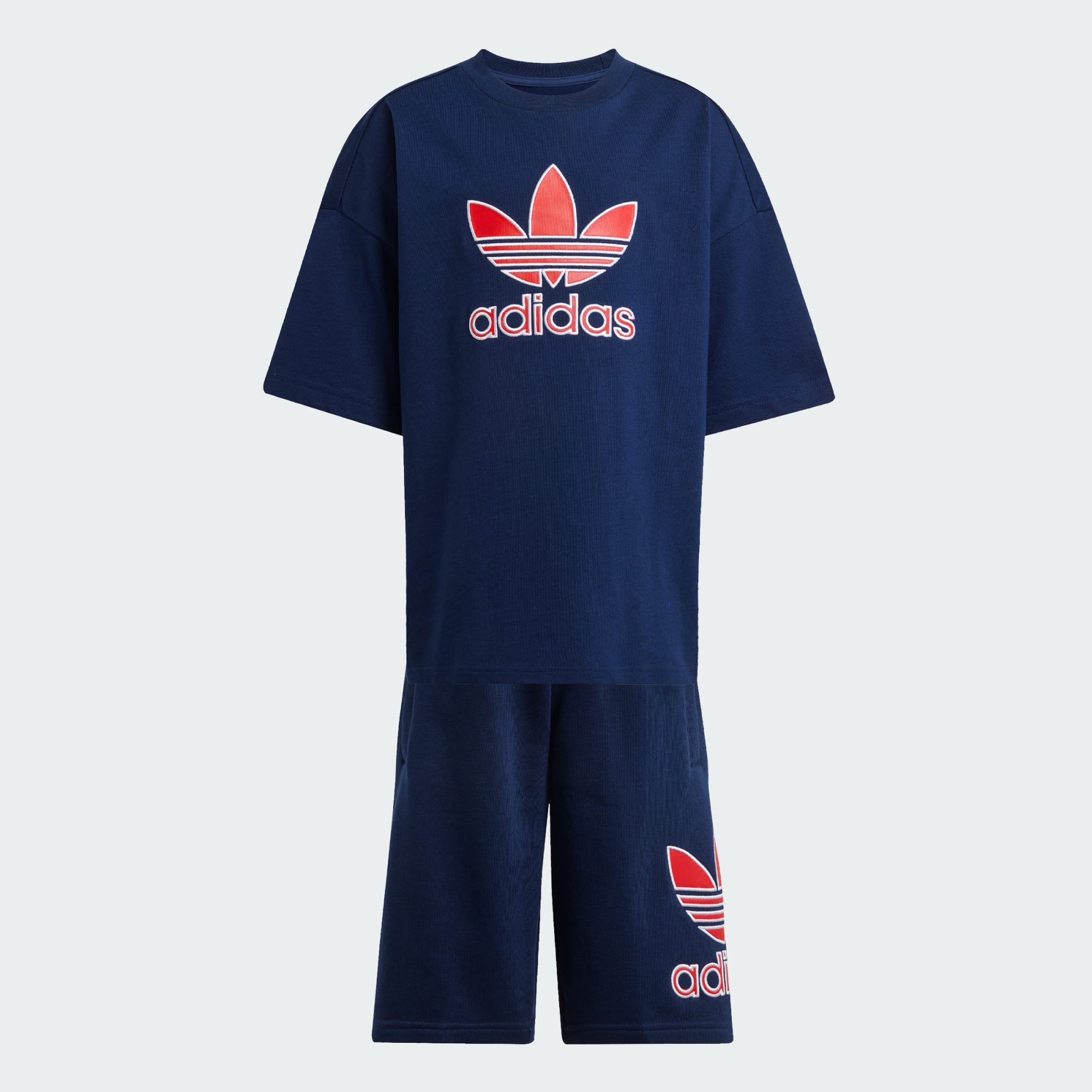 A kids' shorts and tee set with bold adidas style.