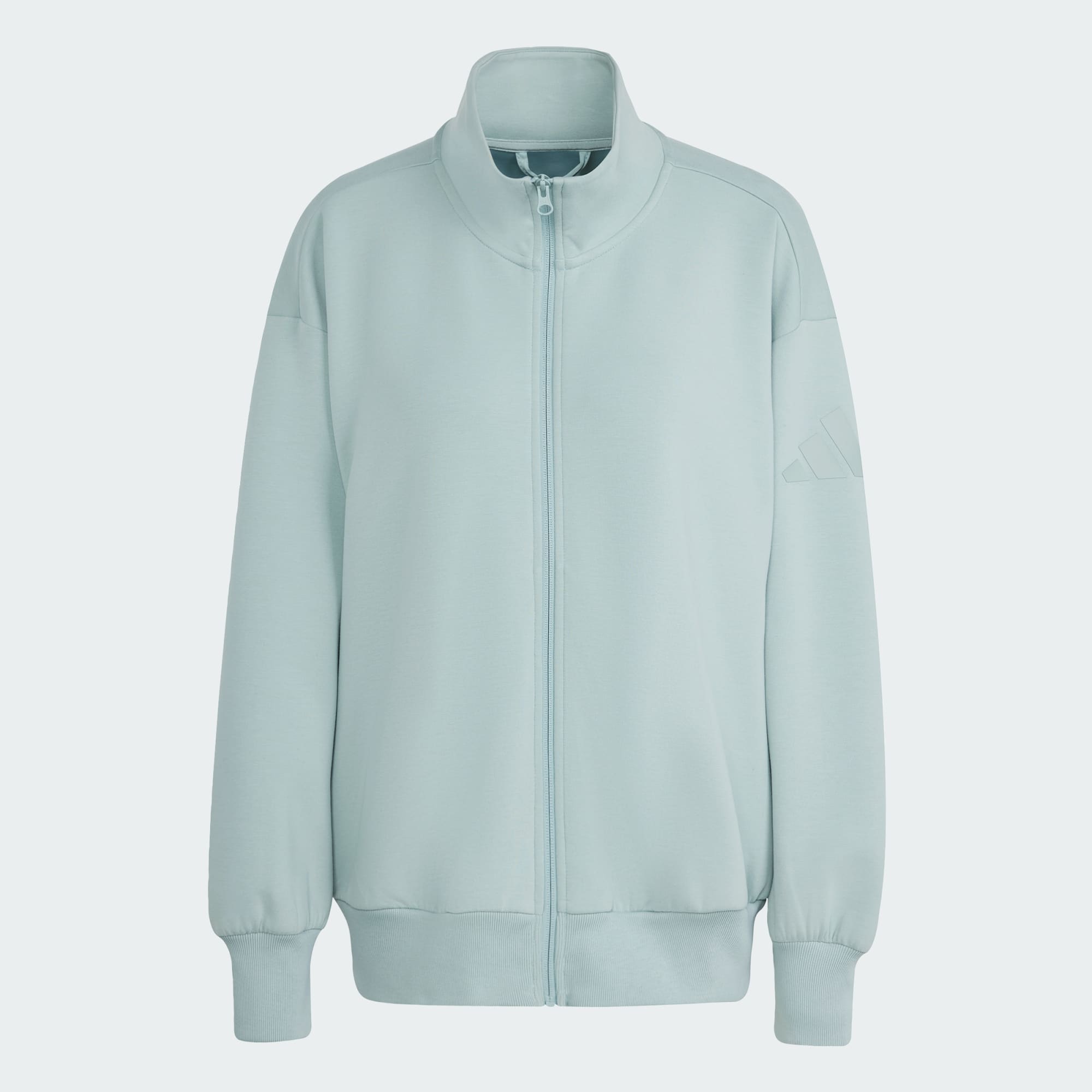 This adidas full-zip top is made from soft peached fabric for a cosy feel. The loose shape and extended length make it the perfect layering piece for a leisurely, laid-back look. A stand-up collar and front zipper let you adjust the coverage as you go about your day.