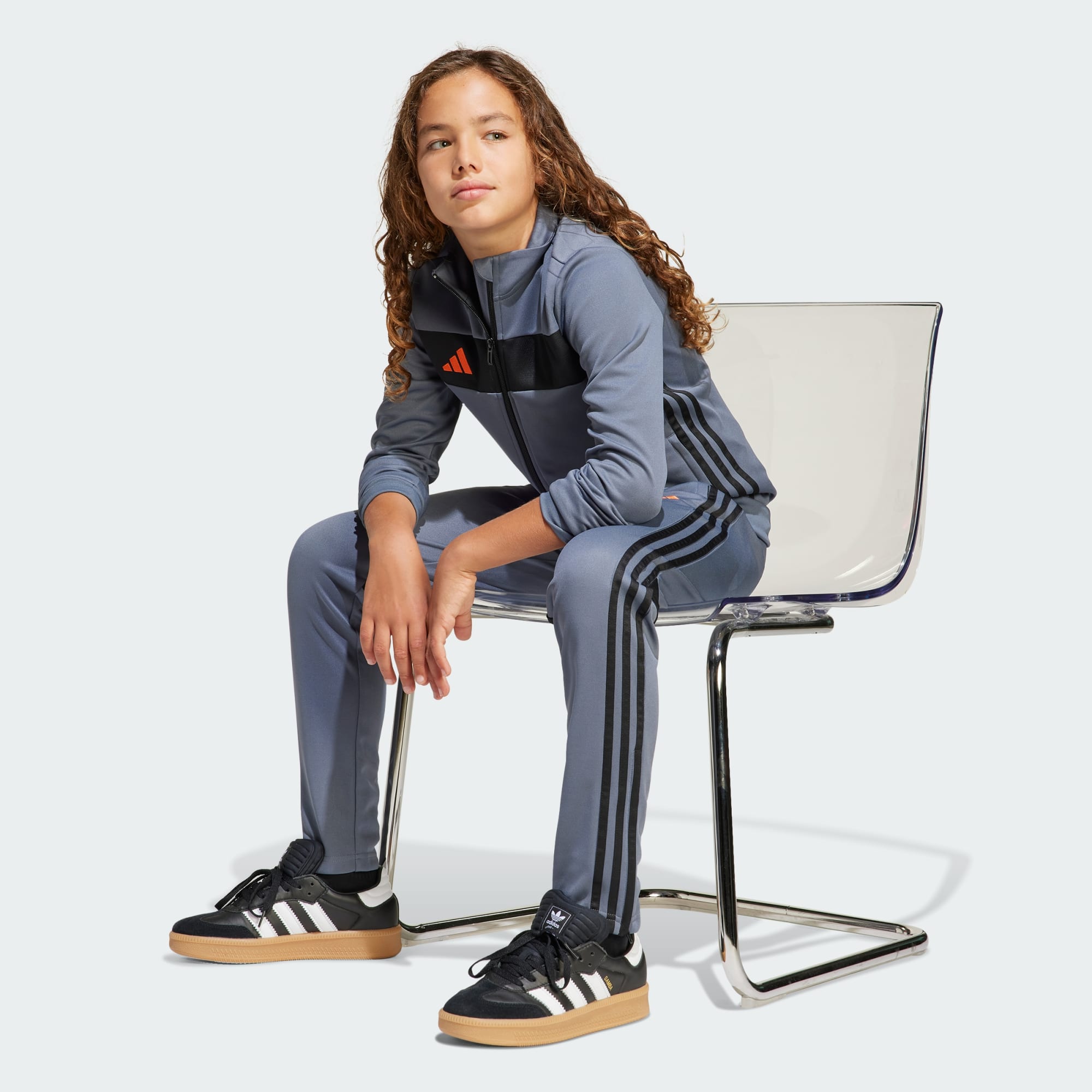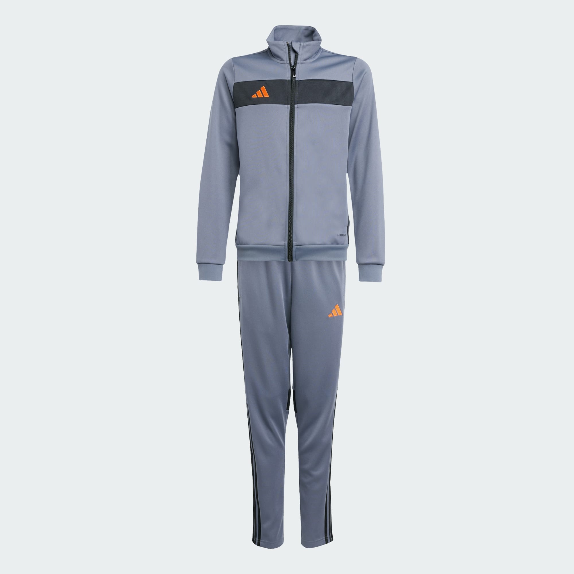 Take your off-field style up a notch. This juniors' track suit from adidas borrows from the beautiful game for a winning look. Moisture-managing AEROREADY keeps you dry when life shifts up a gear, whether you're heading to football training or backing your team. The sleek build and bold styling bring energy to your look as you take on new challenges. This product is made with 100% recycled materials. By reusing materials that have already been created, we help to reduce waste and our reliance on finite resources and reduce the footprint of the products we make.