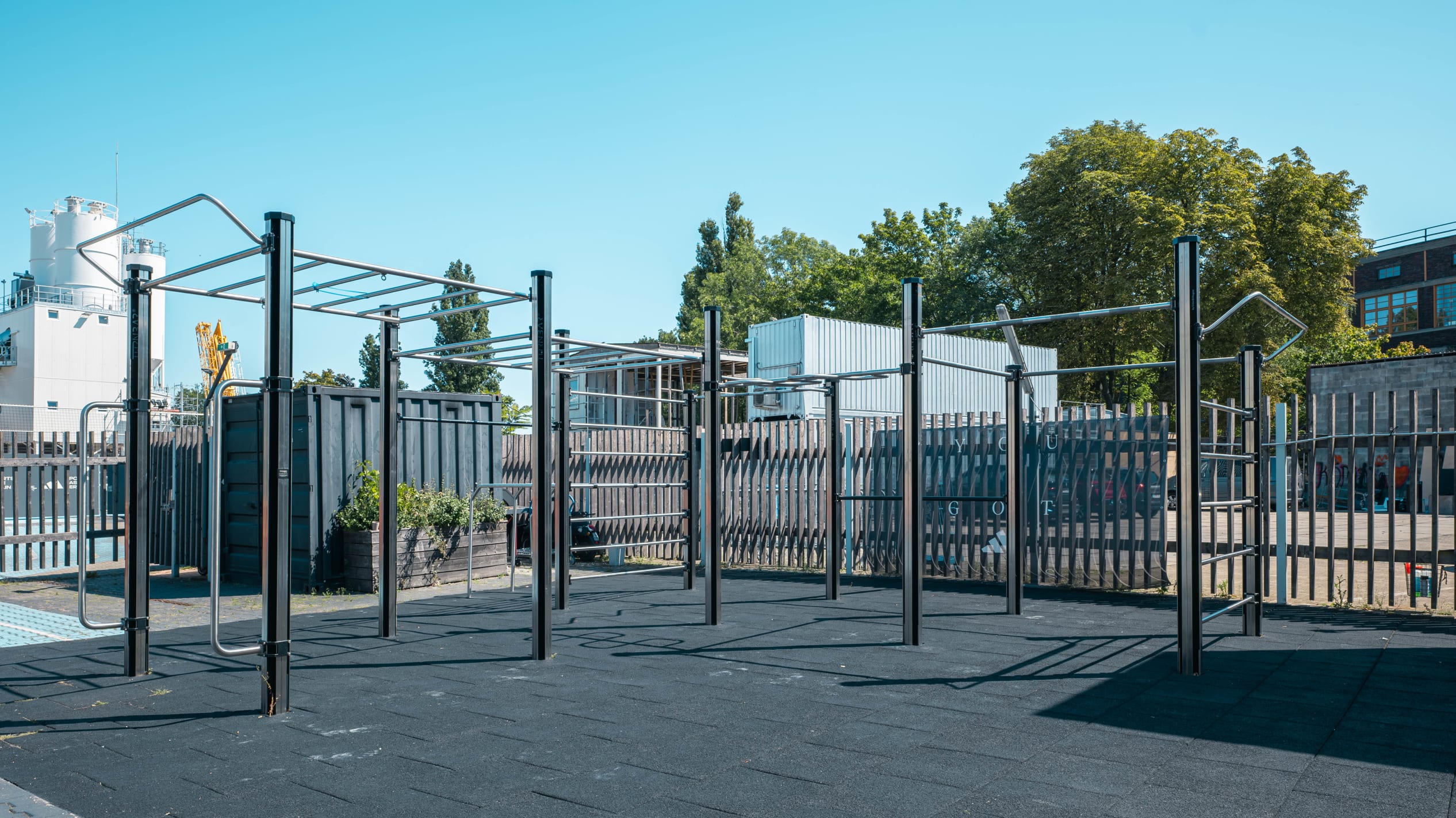 Eine Outdoor-Trainingsfläche für Calisthenics und Bodyweight-Training unter freiem Himmel.