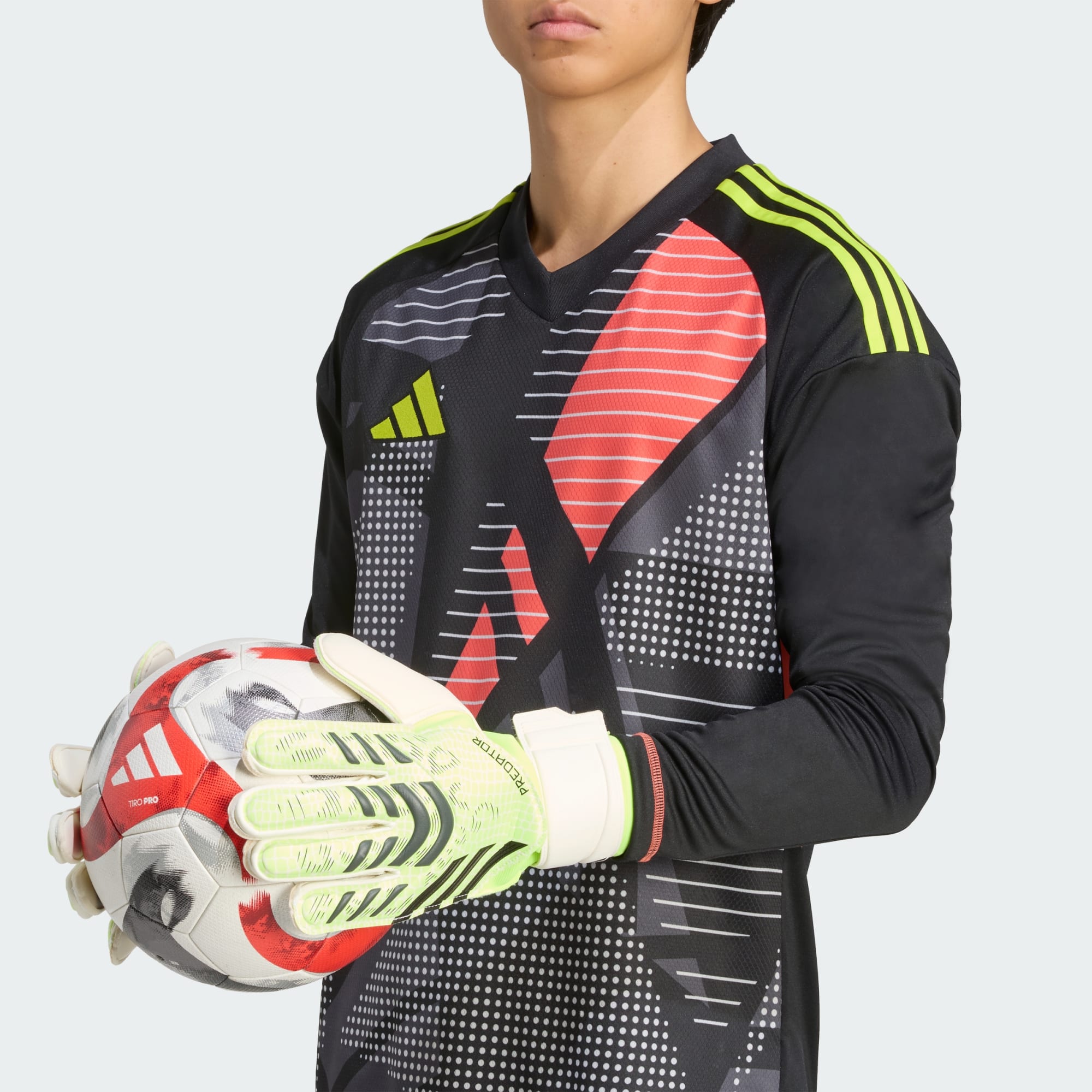 Mit diesen adidas Predator Match Torwarthandschuhen wirst du jeden Schuss halten. Mit dem dämpfenden Soft Grip Pro Latex in der Handfläche und dem flexiblen Handrücken bist du auf alles vorbereitet. Eine halb umlaufende Handgelenksbandage hilft dir, einen stabilen Sitz für komfortables Spielen zu finden.