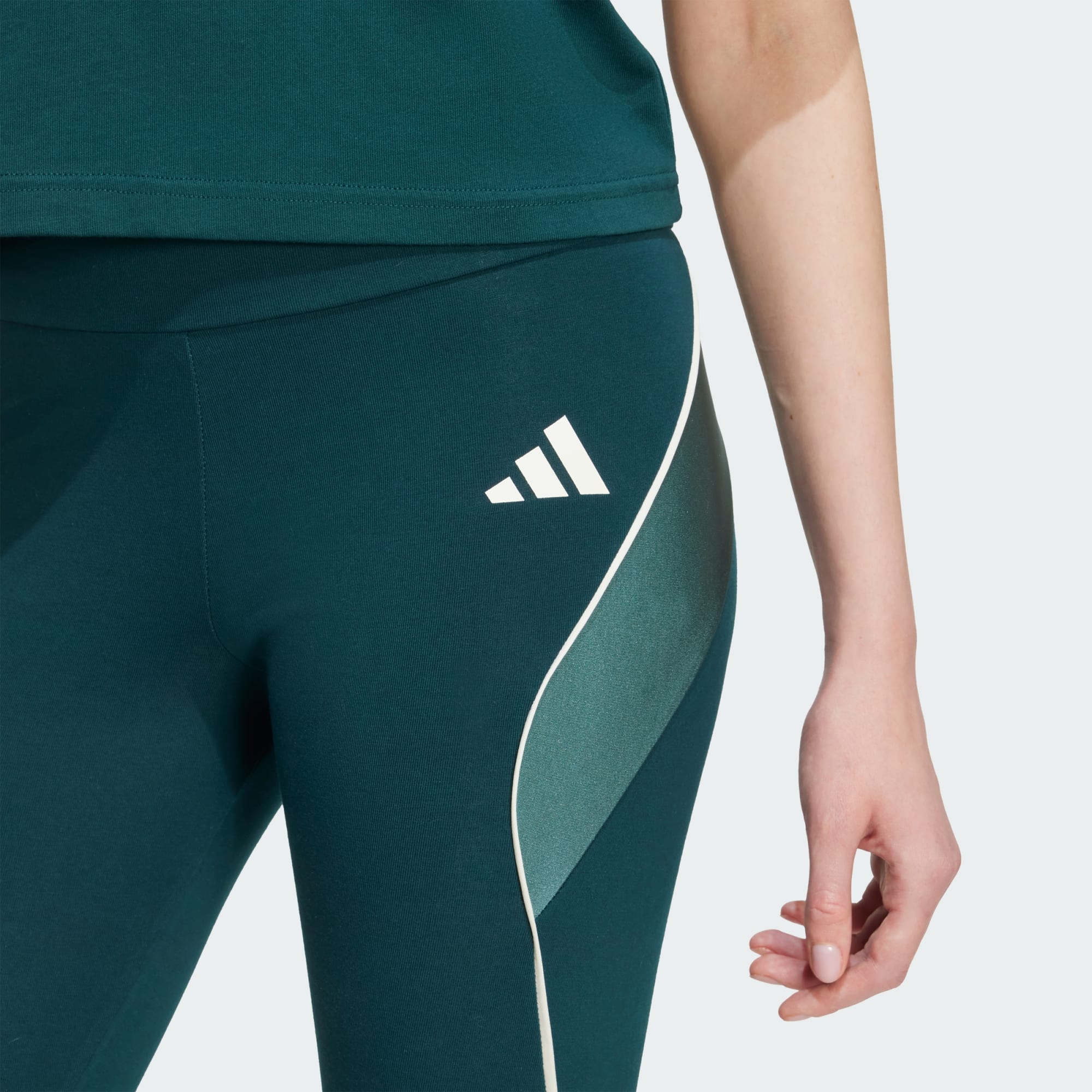 Diese adidas Leggings sind inspiriert von der Energie des Stadions und helfen dir, konzentriert zu trainieren. Das dehnbare Material bewegt sich mit dir durch jeden Ausfallschritt und Sprint. Paspelierungen und kontrastierende Farbblöcke sorgen für ein sportliches Finish.