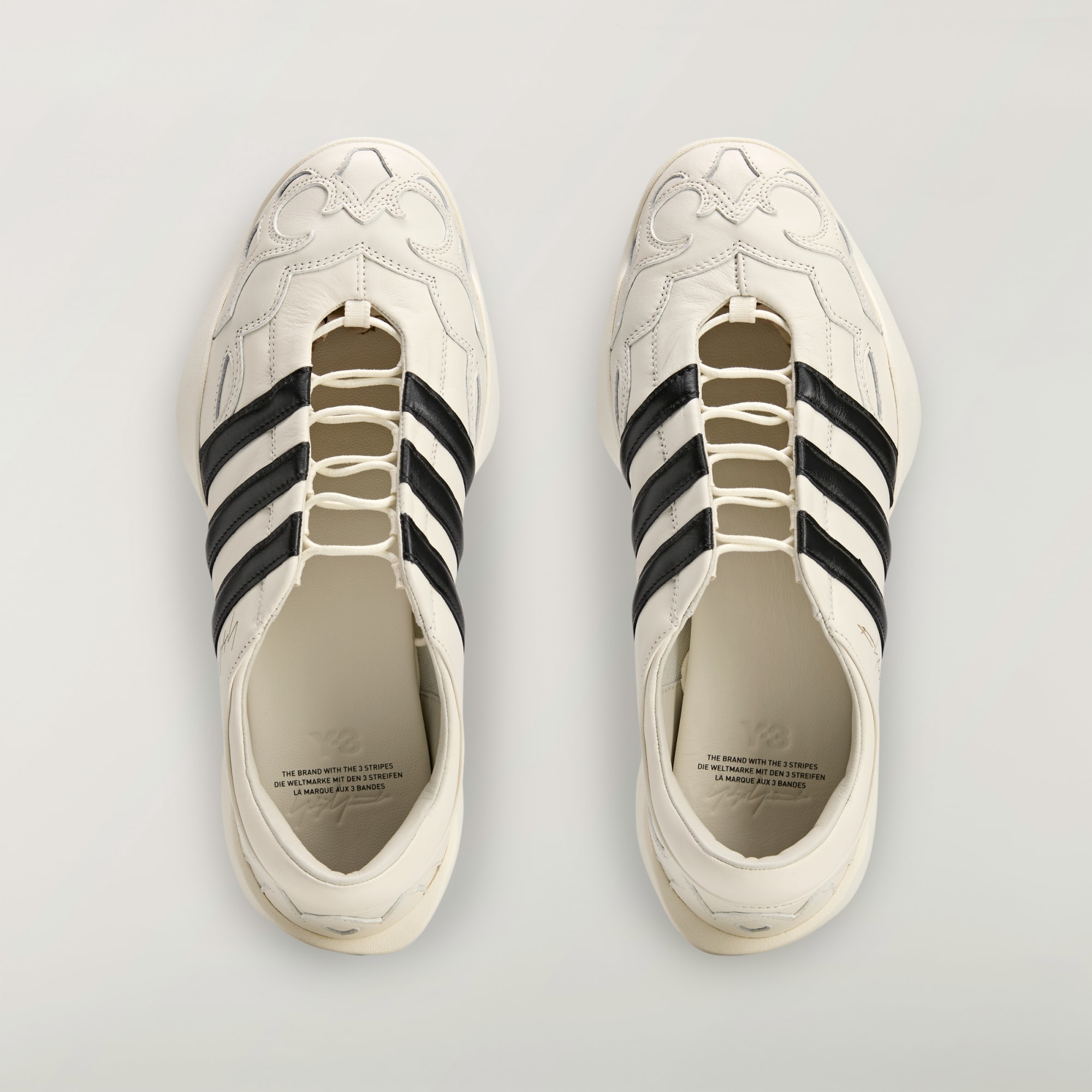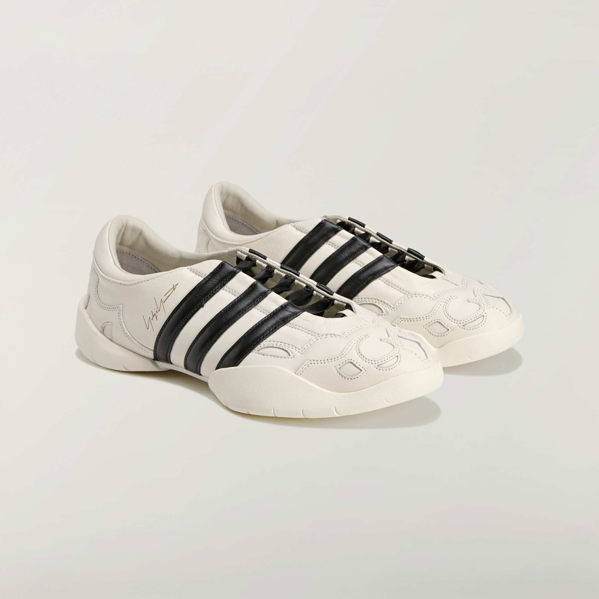 Die lasergravierte Signatur von Yohji Yamamoto neben den legendären 3-Streifen sorgt für Authentizität und Eleganz.